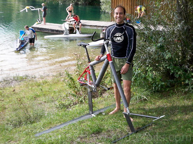 But there are plenty of other interesting projects that have been completed. Below, a foiling bicycle. To date, after 10 years of trying, I have still not been able to clinch this project – but maybe this summer! It is a work in progress. Apologies to the German gentleman below whose idea I have copied.