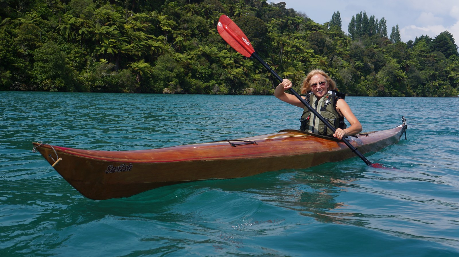 When you live by a lake who could resist building a long light sleek ply kayak. I build a pair of them together on the same mold – a “his and hers” pair called Whoosh and Swiish. Below is the “hers” version. This is a hybrid kayak in that it employs both cedar strips for the hull, and marine ply sheets cut to pattern for the base.