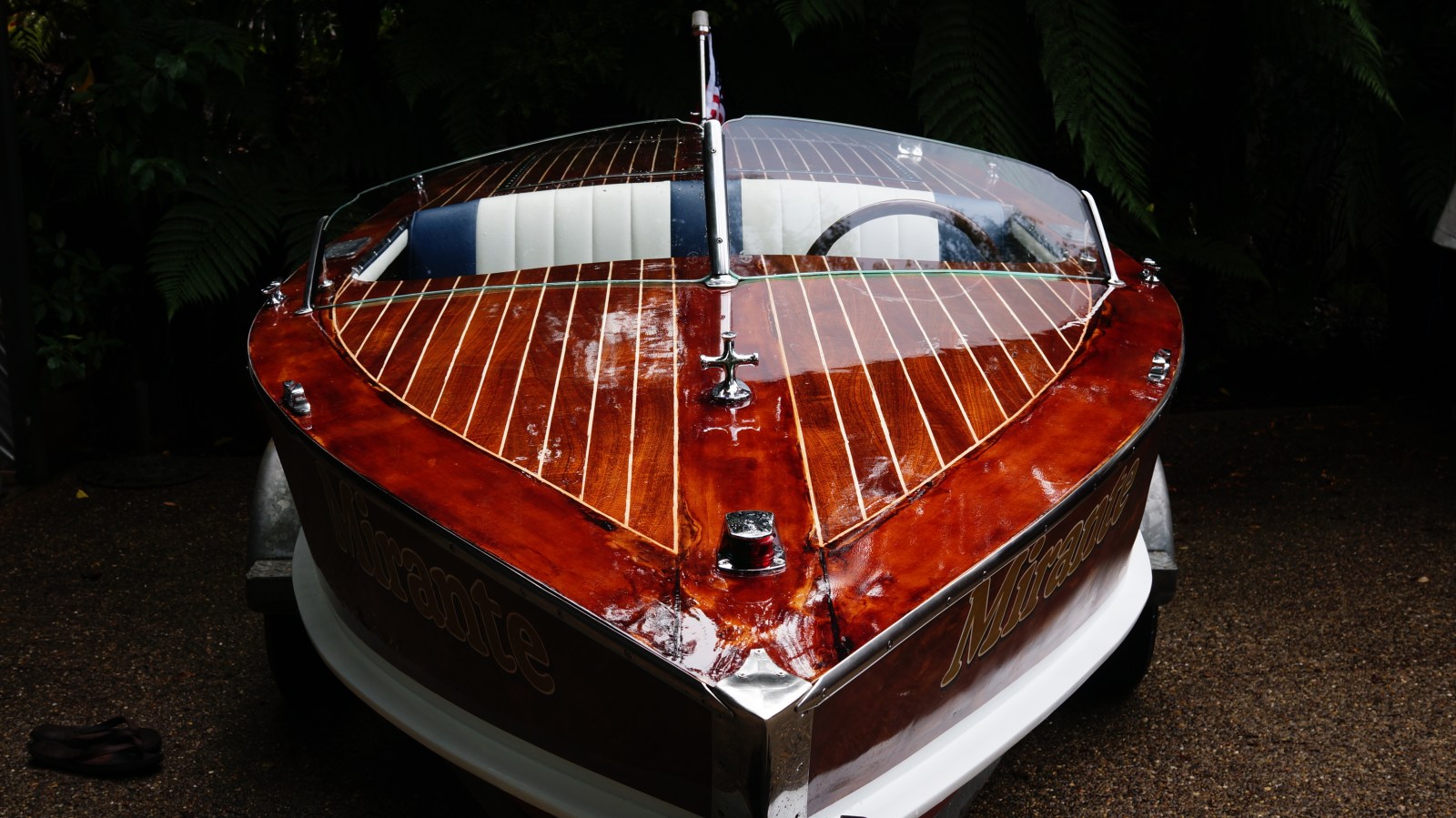 I have a classic boat – a 1961 Albatross, purchased after I completed a mahogony 15 ft runabout styled after 1940s Chris Craft. Driver = daughter. Px = wife.