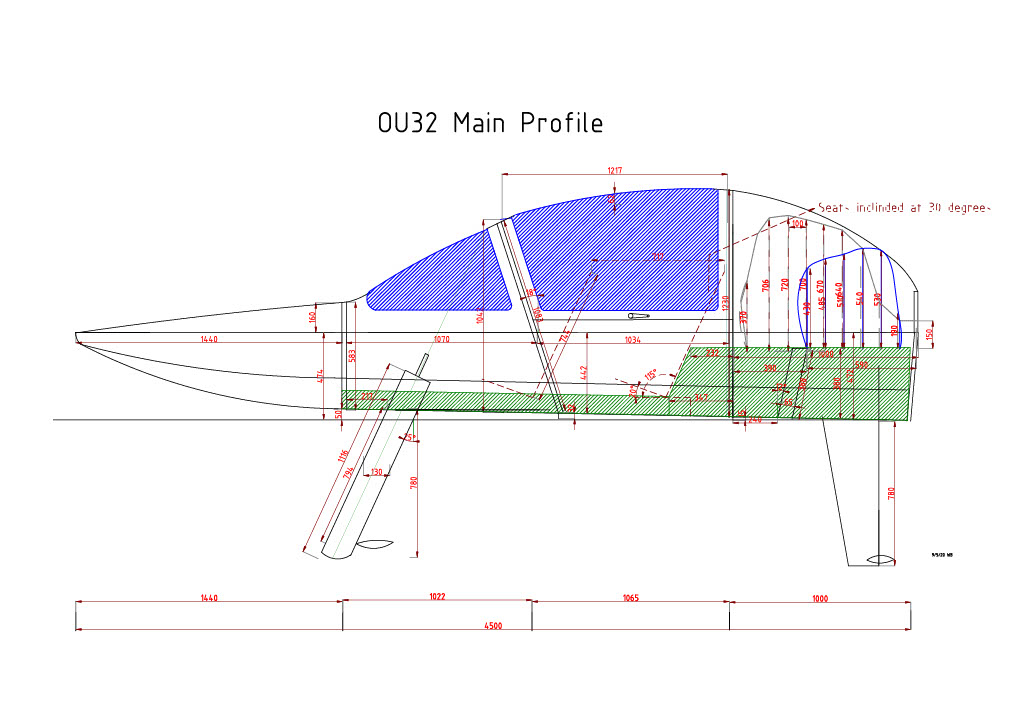 Below, the cad drawing on which the boat hull is based- build with West System stitch and glue technique using 6mm ply and 250 gm weight glass cloth to exterior surface.