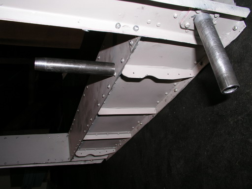 The elevator skins had to be slightly ‘dented’ adjacent to the pivot bearings and the heads of the two pop rivets filed flush to clear the vertical longerons when the tail-plane is installed. There isn’t much room for movement of the elevator on the rudder! Nev Hay had to flatten these rivets as well – to get clearance. Wonder why it isn’t in the plans! All the finished parts wrapped and stored in the attic—just brought out to show visitors.
