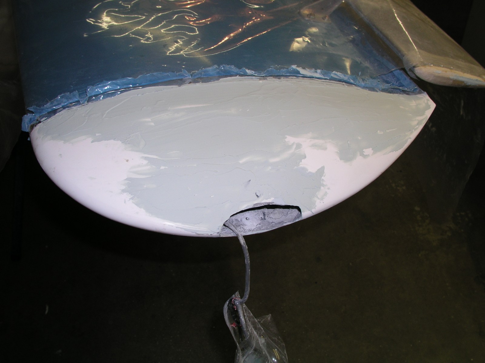 Similar to horizontal tail, with hollowed out false ribs to bond French sourced fibreglass tips. See photo for clever strobe installation. Unit protrudes thru carefully shaped hole, secured by a vanadium screw. The strobe can be removed through the hole by removing the rubber seal.